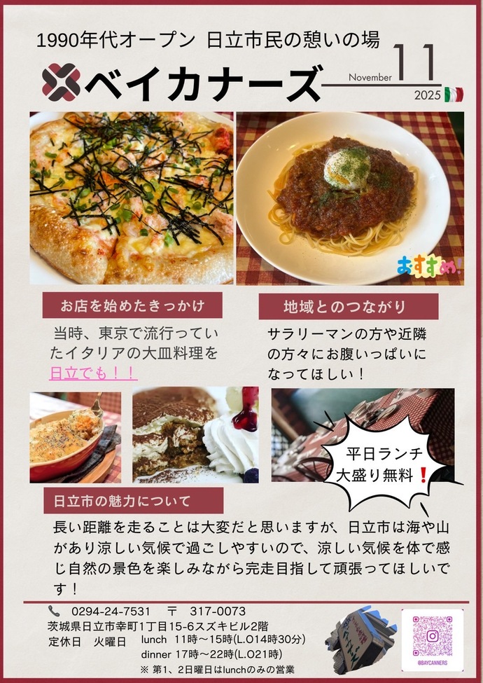 ベイカナーズ(ピザ・パスタ、日立市幸町1-15-6スズキビル2階) (Jpeg 254.7KB)