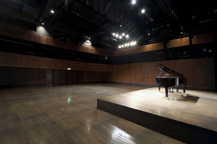 舞台設備:電動昇降床・走行ブリッジ8台・ライトバトン2本・バトン15本・ホリゾント幕