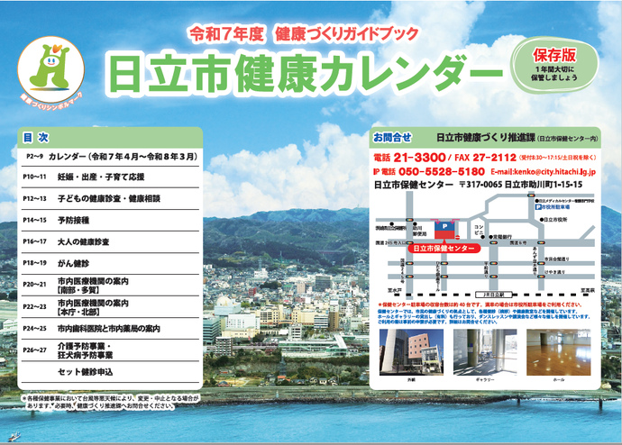 - 日立市の行う予防接種、健康診査、がん検診、介護予防事業などの健康づくり情報が網羅されており、子育て世帯からご高齢の方まで、幅広い年代の方にご覧いただける内容になっています。