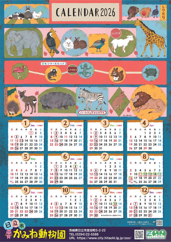 かみね動物園オリジナルカレンダー(2026年版)販売中!